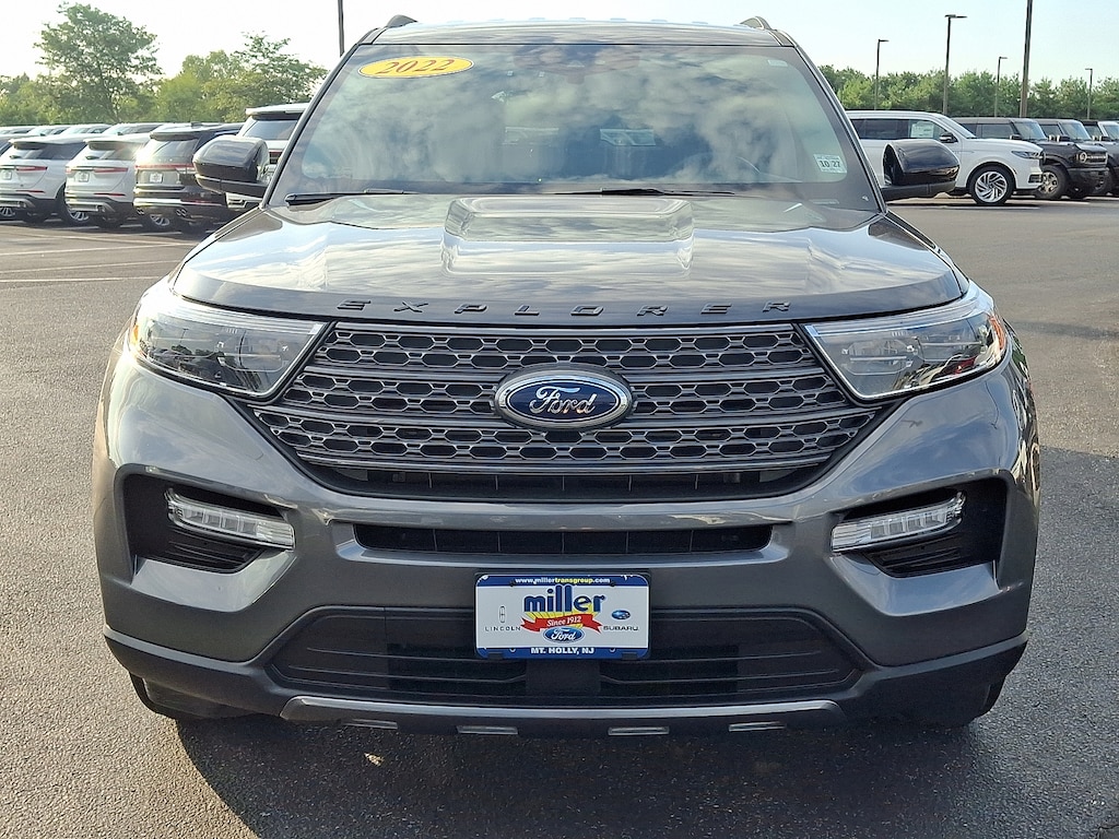 "20/27 City/Highway MPG 2022 Ford Explorer XLT Carbonized Gray Metallic *Ford Certified* *One Owner* *Clean Vehicle History Report* *Bluetooth Hands-Free* *3rd Row Seats* *Non Smoker* *Local Trade Not a Prior Rental Vehicle* 4WD 1st Row Heated Seats Acoustic-Laminated Front Side Windows ActiveX Captain's Chairs Equipment Group 202A Evasive Steering Assist Exterior Parking Camera Rear Ford Co-Pilot360 Assist+ Heated Steering Wheel Intelligent Adaptive Cruise Control LED Fog Lamps Navigation System Remote Start System SecuriCode Keyless Entry Keypad Speed Sign Recognition Voice-Activated Touchscreen Navigation System Wheels: 20""10-Spoke Carbonized Gray-Painted XLT Sport Appearance Package.Certification Program Details: Ford Blue Advantage: Blue Certified* 139 Point Inspection* Transferable Warranty* Vehicle History* Warranty Deductible: $100* Roadside Assistance* Limited Warranty: 3 Month/4000 Mile (whichever comes first) after new car warranty expires or from certified purchase date* and 11000 FordPass Rewards Points to use toward first maintenance visit"