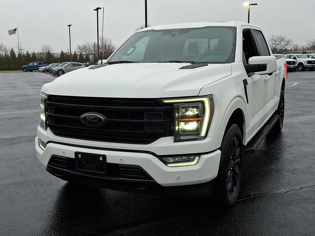 "2023 Ford F-150 Lariat Star White Metallic Tri-Coat *Ford Certified* *One Owner* *Clean Vehicle History Report* *Bluetooth Hands-Free* *Leather Seats* *Heated Front Seats* 4WD 2nd Row Heated Seats 4x4 FX4 Off-Road Bodyside Decal Accent-Color Angular Step Bars Bed Utility Package Body-Color Front & Rear Bumpers Box Side Decals BoxLink Chrome Single-Tip Exhaust Class IV Trailer Hitch Receiver Connected Built-In Navigation Dark 2-Bar & 1 Minor Bar Style Grille Equipment Group 502A High Evasive Steering Assist Ford Co-Pilot360 Assist 2.0 FX4 Off-Road Package Hill Descent Control Integrated Trailer Brake Controller Intelligent Adaptive Cruise Control w/Stop & Go Intersection Assist Lariat Sport Appearance Package LED Box Lighting LED Projector w/Dynamic Bending Headlamps Monotube Rear Shocks Navigation system: Connected Navigation Off-Road Tuned Front Shock Absorbers Power Tailgate Power Tilt/Telescoping Steering Column w/Memory Pro Trailer Backup Assist & Pro Trailer Hitch Assist Rain-Sensing Wipers Rock Crawl Mode Speed Sign Recognition Tailgate Step w/Tailgate Work Surface Tough Bed Spray-In Bedliner Trailer Tow Package Twin Panel Moonroof Wheels: 20""Chrome-Like PVD Wireless Charging Pad.Certification Program Details: Ford Blue Advantage: Blue Certified* 139 Point Inspection* Transferable Warranty* Vehicle History* Warranty Deductible: $100* Roadside Assistance* Limited Warranty: 3 Month/4000 Mile (whichever comes first) after new car warranty expires or from certified purchase date* and 11000 FordPass Rewards Points to use toward first maintenance visit"